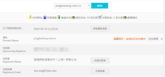 但2015年的前程無憂似乎覺得已經(jīng)足夠了,也不曾關(guān)注yingjiesheng.com之外其他相關(guān)的域名。